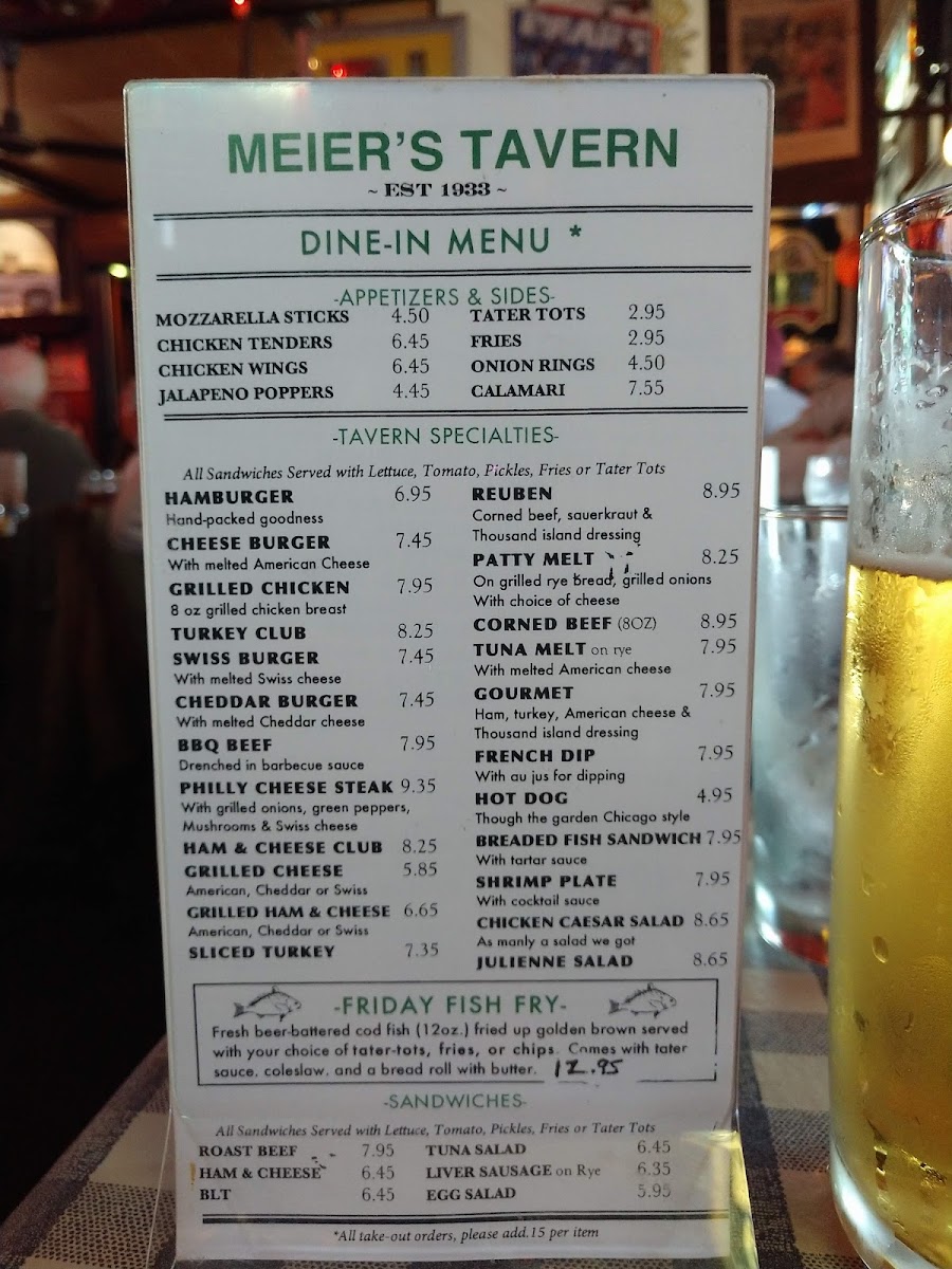 Meier's Tavern Menu